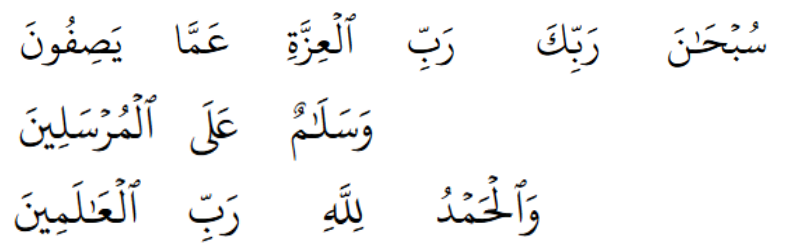 “Glory be to your Lord, the Lord of Might above what they describe. And peace be upon those sent. And praise be to Allah, the Lord of the worlds.”